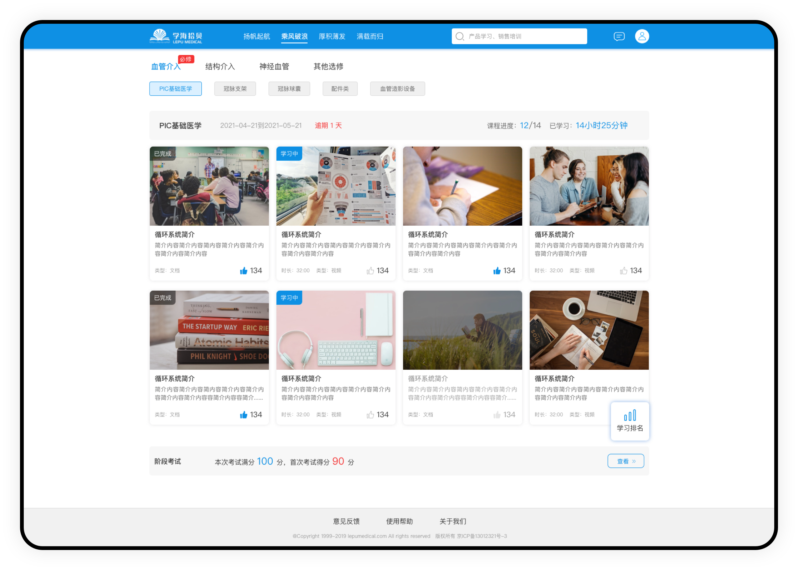 北京合合科技2021年4月再添重磅合作伙伴——樂普醫(yī)療,其憑借過硬的技術(shù)水平、豐富的技術(shù)經(jīng)驗(yàn)、詳細(xì)的技術(shù)方案、雄厚的公司實(shí)力,在眾多競(jìng)品公司中突圍,實(shí)現(xiàn)與樂普醫(yī)療合作,主要承接樂普醫(yī)療的在線培訓(xùn)系統(tǒng)的小程序和PC網(wǎng)站的研發(fā)。通過該培訓(xùn)系統(tǒng),員工可以在平臺(tái)上進(jìn)行課程培訓(xùn),可以更好的進(jìn)行員工管理。下面是其PC網(wǎng)站研發(fā)頁(yè)面的相關(guān)展示:
